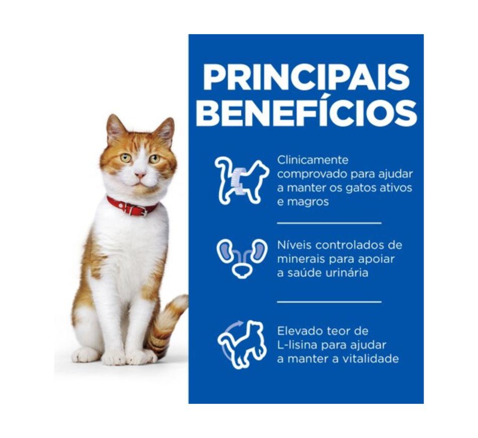 Hill's Science Plan Sterilised Cat alimento para gato adulto com frango é um alimento completo para gatos esterilizados com 6 meses a 6 anos de idade.