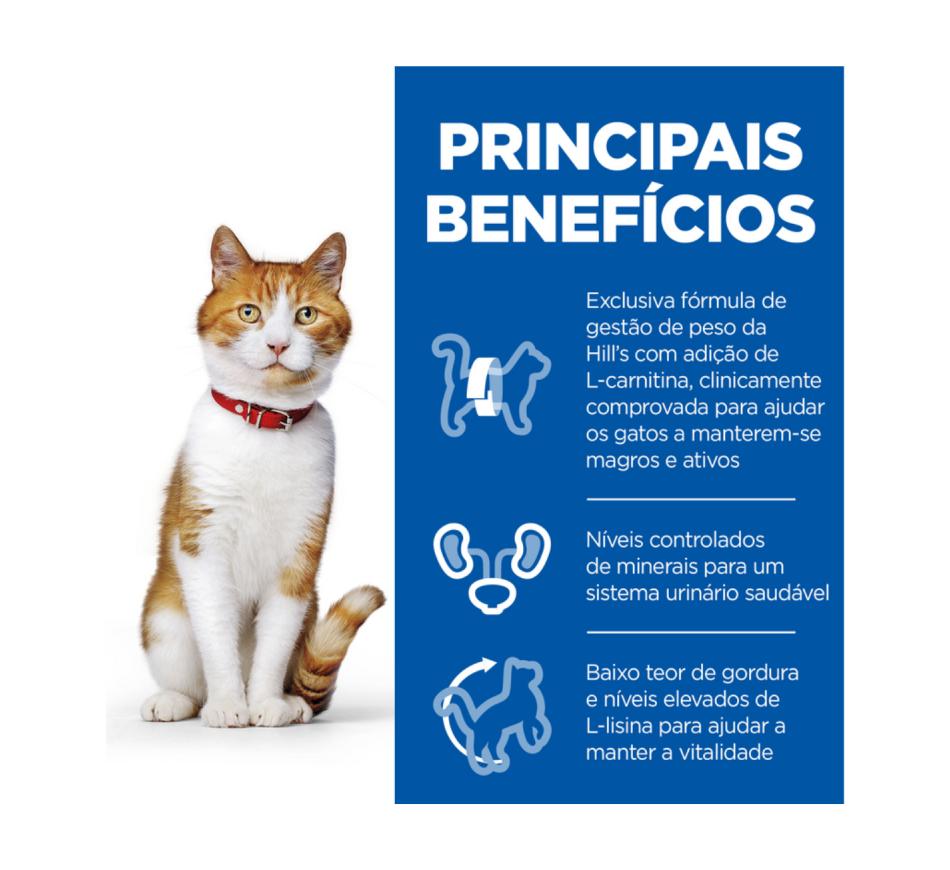 Com L-carnitina adicionada clinicamente comprovada para ajudar os gatos a manterem-se em forma e ativos