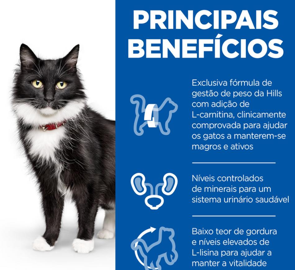 Hill's Science Plan Sterilised Cat alimento para gato adulto maturo com frango (frango 14%; total aves 21%) é um alimento completo para gatos esterilizados com 7 ou mais anos de idade.