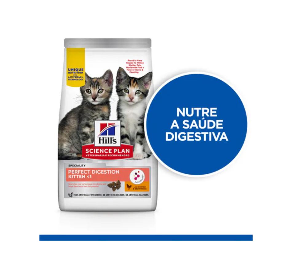 Hill's Science Plan Perfect Digestion alimento para gatinho com frango e arroz integral é um alimento completo para gatinhos com 3 semanas até 12 meses e para gatas gestantes e lactantes.