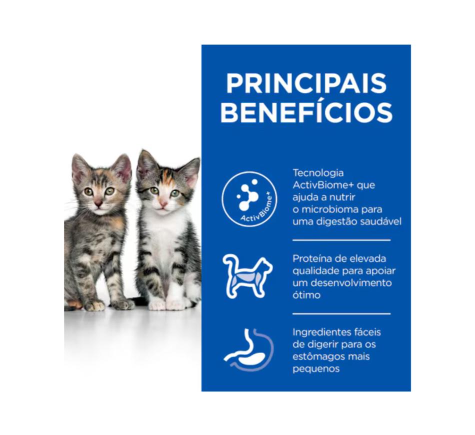 Hill's Science Plan Perfect Digestion alimento para gatinho com frango e arroz integral contém ActivBiome+, uma combinação exclusiva de prebióticos da Hill's para nutrir o microbioma único do seu gato e ajudá-lo a alcançar todo o seu potencial.