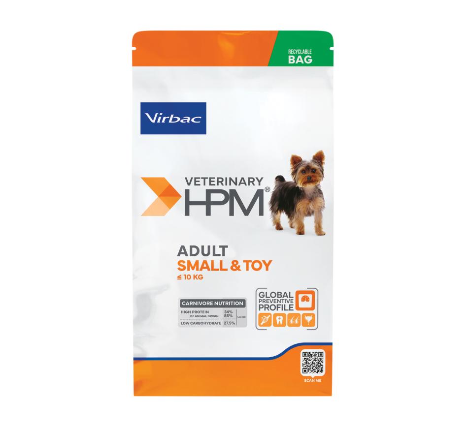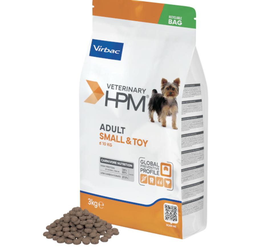O desafio nos cães adultos é manter uma composição corporal ótima através de uma dieta equilibrada e níveis adequados de atividade. Foi por esta razão que a virbac desenvolveu veterinary hpm™ adult dog small & toy, para responder às necessidades específicas do seu cão adulto.