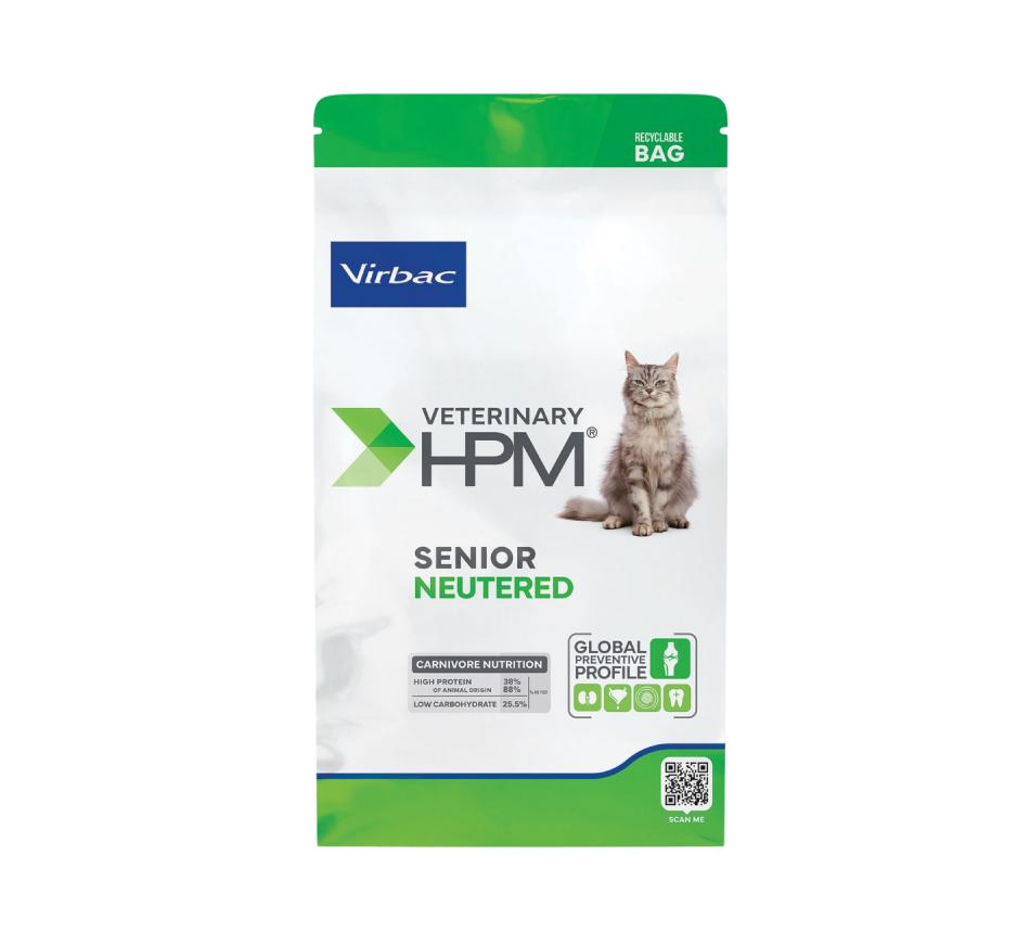 Frequentemente, é observada uma diminuição de apetite nos gatos seniores e há uma predisposição para perda de peso e desgaste muscular. Foi por isso que a virbac desenvolveu veterinary hpm™ senior neutered cat, para responder às necessidades do seu gato sénior.