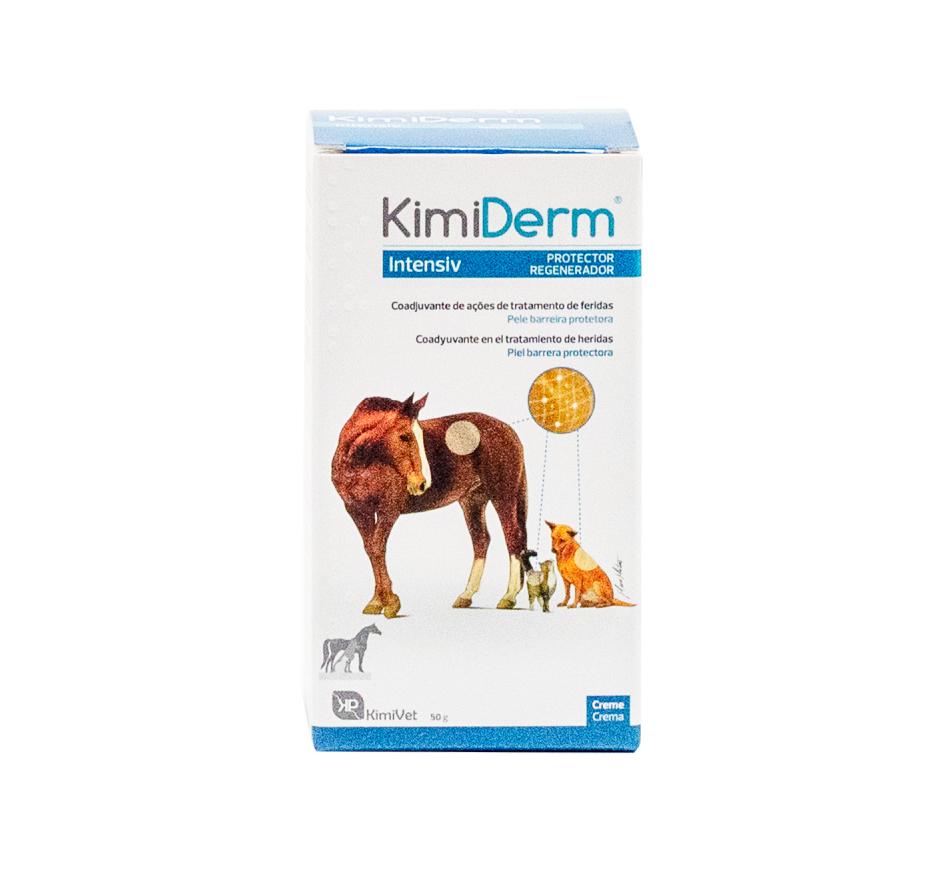 Kimiderm Creme intensive é um coadjuvante de ações de tratamento de feridas e outras situações cutâneas, ou outro tipo de soluções de continuidade da pele dos animais.