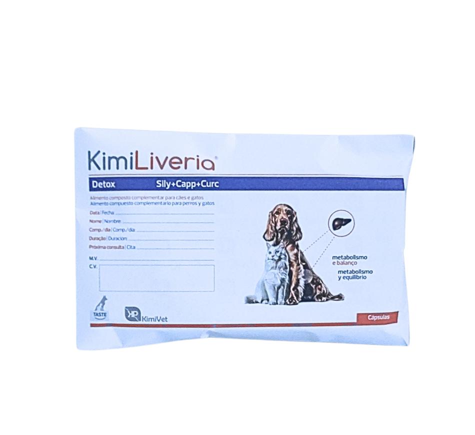 KimiLiveria® Cápsulas é um alimento composto complementar palatável, em cápsulas lipídicas, otimizado com elevado teor em substâncias antioxidantes, contribuindo para a manutenção fisiológica da função hepática saudável. Devido à atividade antioxidante, contribuindo para o controlo dos radicais livres, KimiLiveria® pode ser útil em todas as situações de suporte nutricional no caso de insuficiência hepática crónica ou em situações de intoxicações, na utilização terapêutica de medicamentos, doenças infeciosas ou parasitarias.