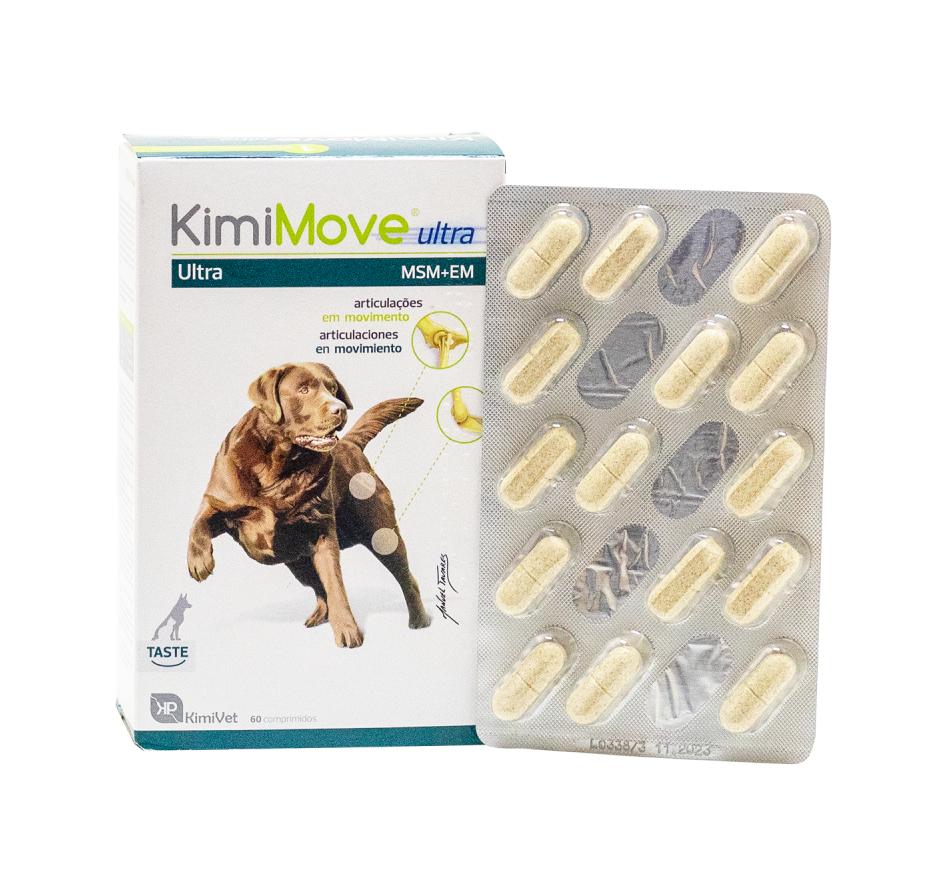 KimiMove Ultra é um suplemento alimentar Condroprotetor para cães e gatos.