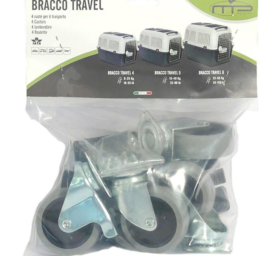 O kit de 4 rodas para Transportadora Bracco Sprint Eco facilita a deslocação da transportadora durante as suas viagens.