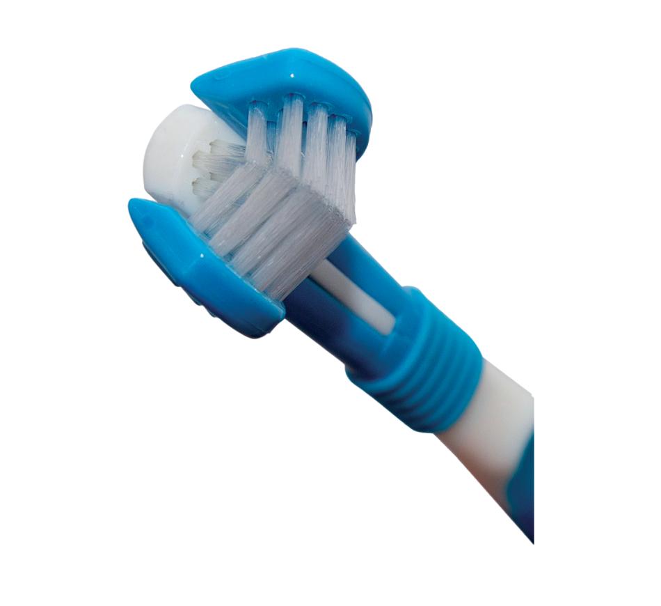 - A escova conta com um inovador triplo cabeçote flexível, que se adapta facilmente à anatomia dental do seu pet.