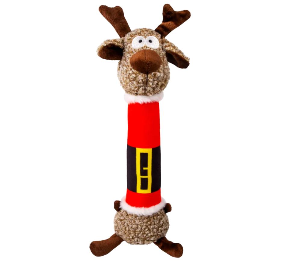 A rena KONG Holiday Shakers Luvz está disfarçada de Pai Natal e é perfeita para a época. Com o seu longo corpo é perfeita para brincadeira de puxar e sacudir, e é composta por tecidos resistentes e prontos a aguentá-las. O apito suave que soa quando é apertada cativa a atenção dos cães e alegra este Natal.