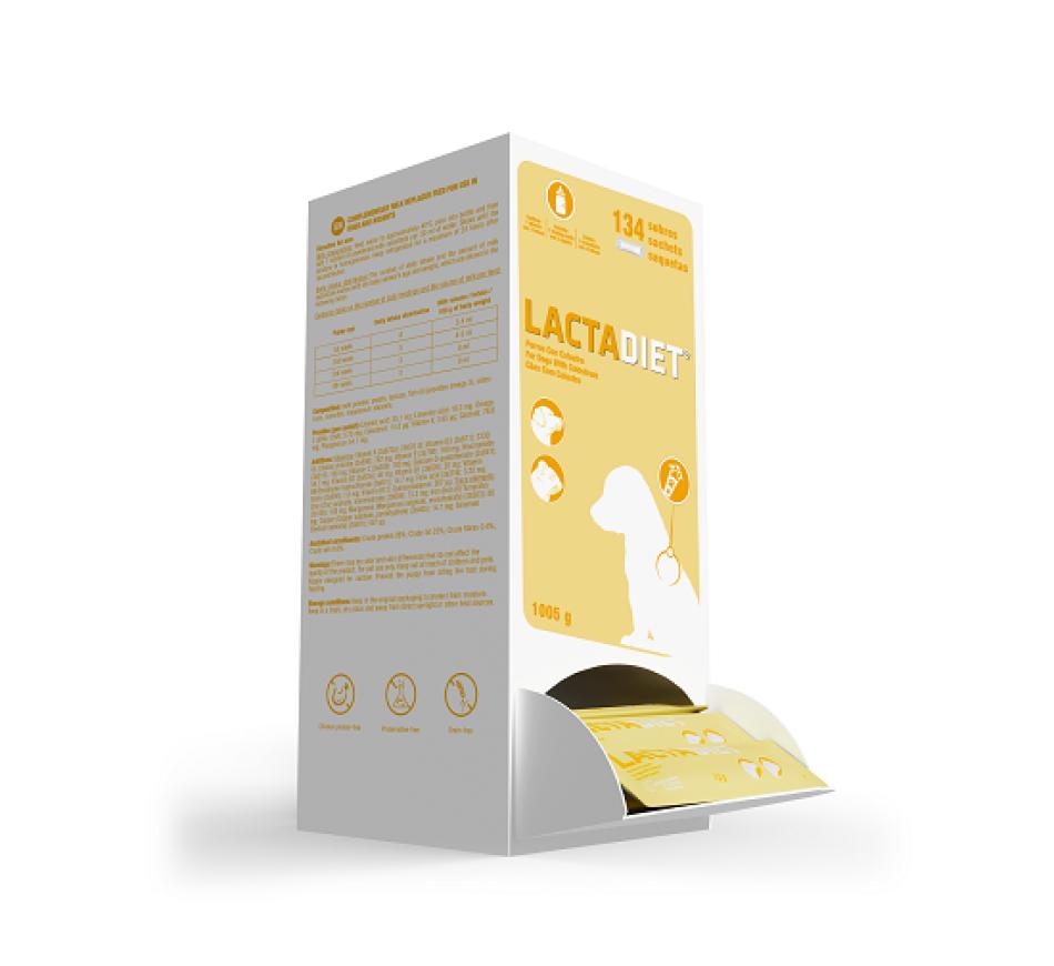Lactadiet Cães é um alimento para cahorros desde o nascimento até ao desmame, à base de leite desnatado enriquecido com Colostro, Ómega 3 (DHA e EPA), Colina, Vitaminas e Oligoelementos, pode também ser dado a cadelas em gestação e ou em lactação.