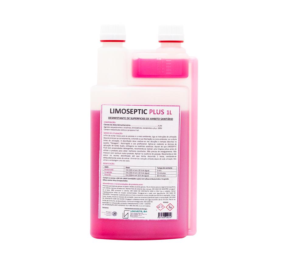 Limoseptic Plus é um desinfetante de superfícies (paredes, solos e outras superfícies laváveis) para utilizar em instalações e equipamentos veterinários.