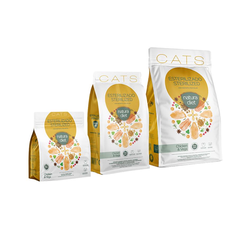 Natura Diet Gato Esterilizado Frango e vegetais é um alimento completo, natural, nutritivo e saudável, biologicamente adaptado para ser desfrutado por gatos adultos esterilizados ou que precisam de controlar o peso. Graças à composição de ingredientes de alta qualidade e o baixo teor calórico cuidam do seu sistema urinário e digestivo ao mesmo tempo que ajudam a regular o stress e o bem-estar emocional.