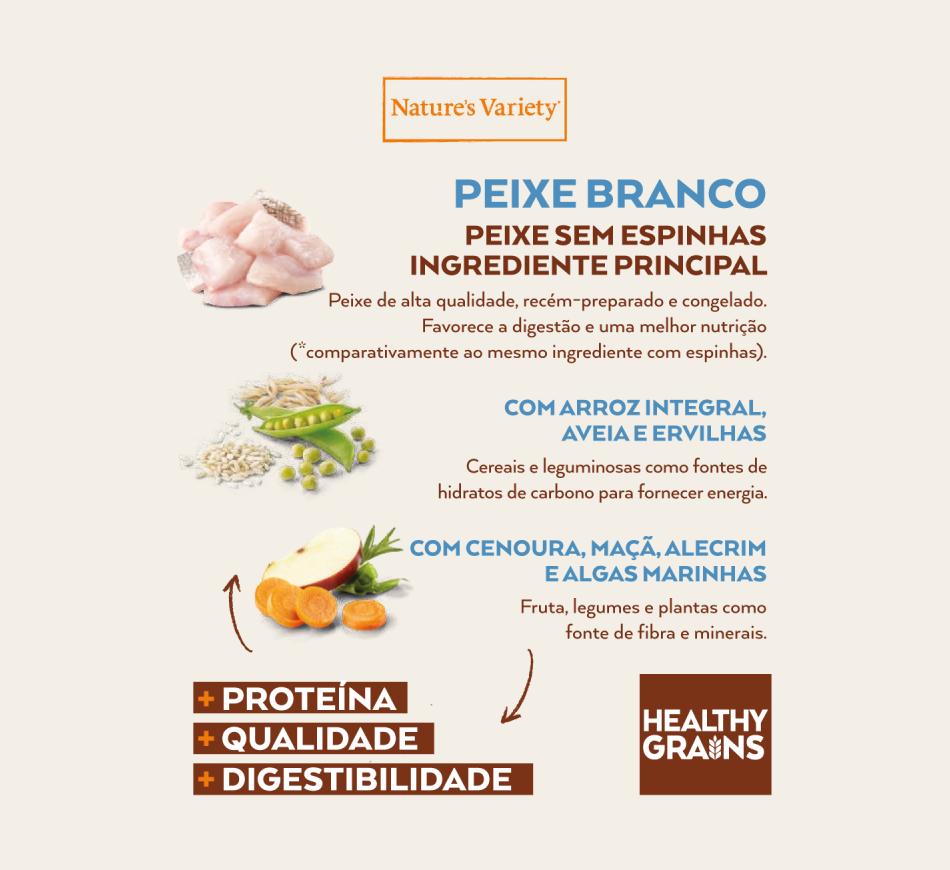 Nature's Variety Healthy Grain Cão Adulto Medium/Maxi - Peixe Branco