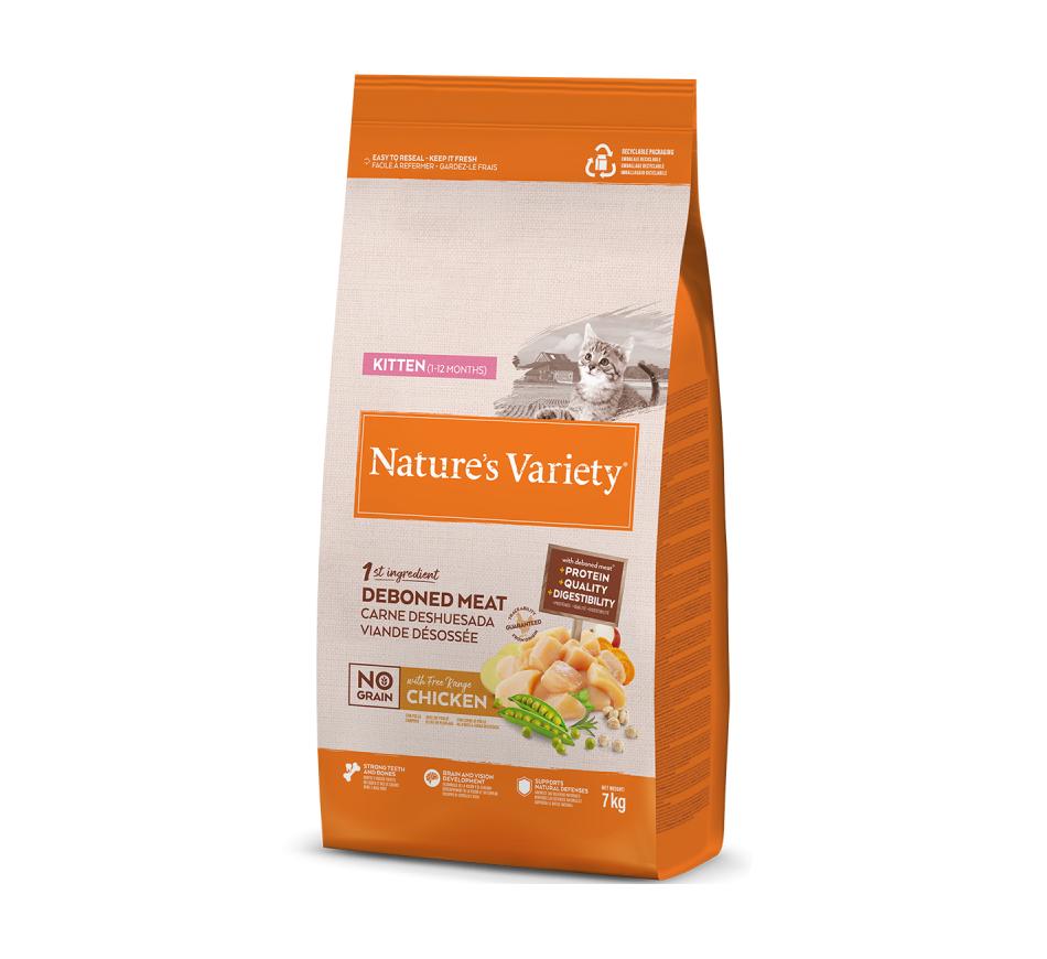 Nature's Variety No Grain Kitten - Frango do Campo é um Alimento completo e equilibrado para gatinhos de 1 a 12 meses e para gatas gestantes e lactantes, sem cereais.