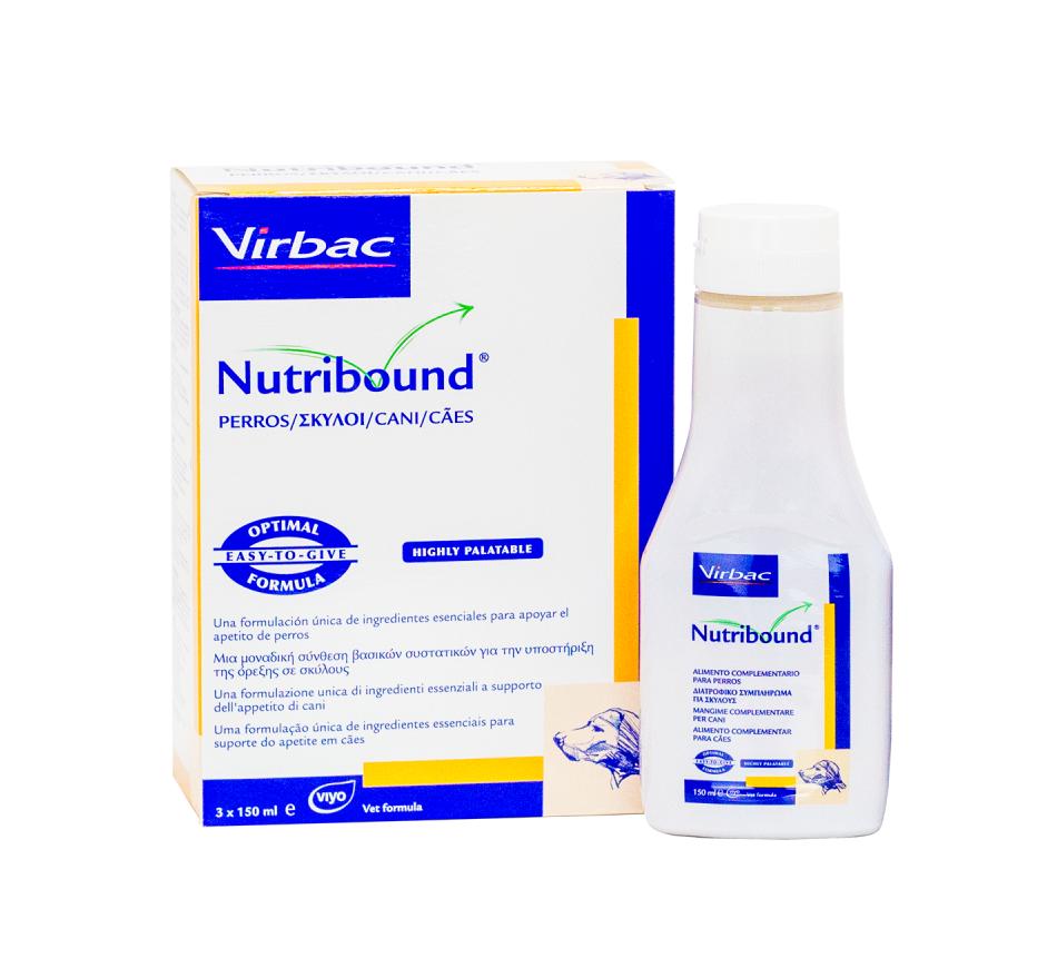 Nutribound é uma formulação líquida pronta a utilizar e altamente palatável que estimula a ingestão de sólidos e líquidos até ao retorno à alimentação normal.