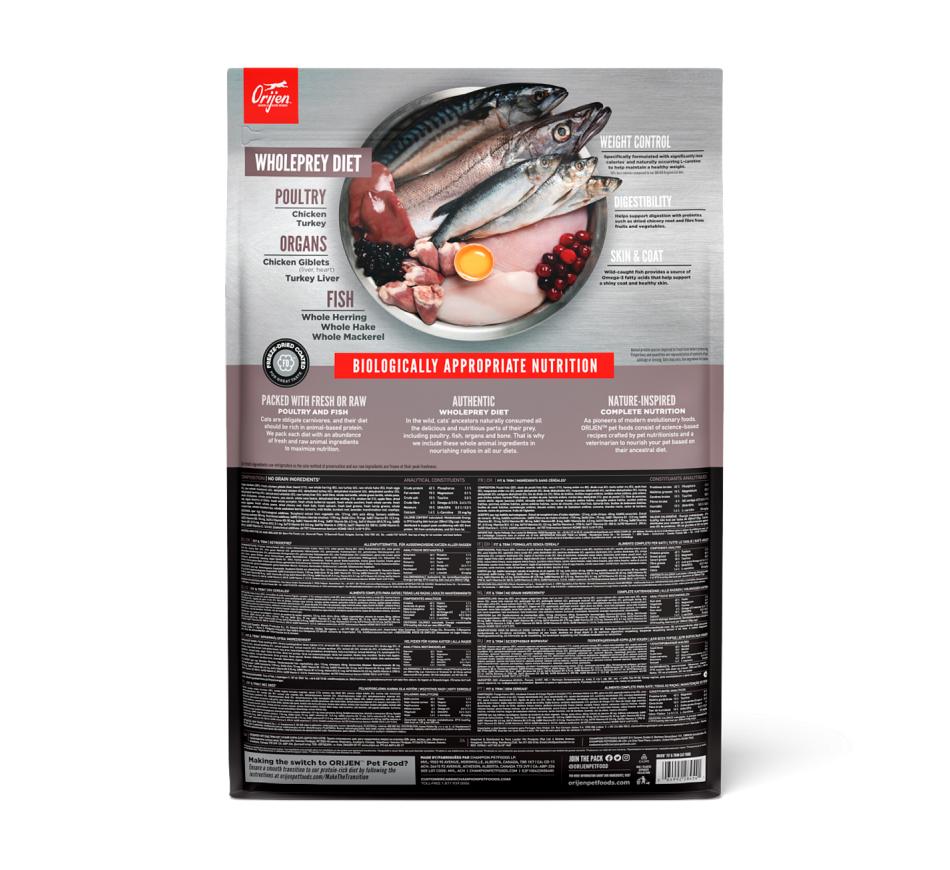 Preparado com os melhores e mais frescos ingredientes, ORIJEN mantém o seu gato ou gatinho, feliz, saudável e forte.