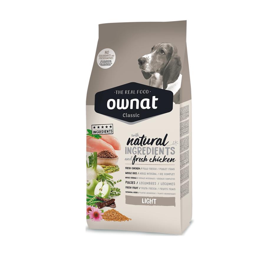 Ownat Classic Light é um alimento completo e equilibrado criado para satisfazer as necessidades nutricionais de cães com pouca atividade com excesso de peso ou tendência para engordar, ajuda a perder peso e a manter o peso ideal, cuidando da sua condição física e saúde.