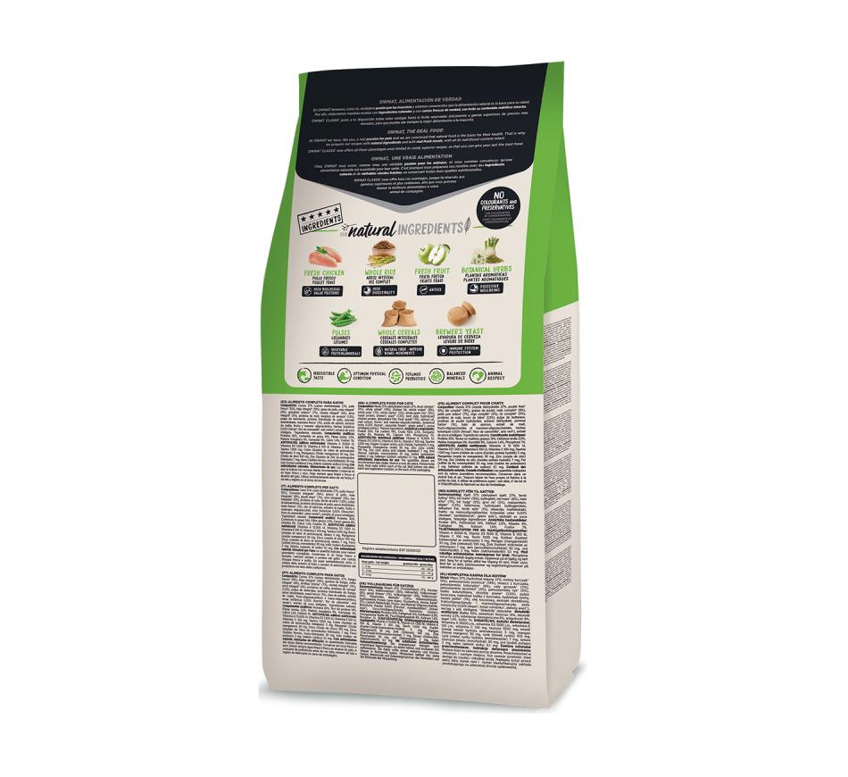 Ownat Classic hairball é uma ração completa e equilibrada, com excelente sabor graças à incorporação de carne fresca. Desenvolvido para cobrir todas as necessidades nutricionais de um gato adulto com um nível normal de atividade, independentemente da sua raça e tamanho.