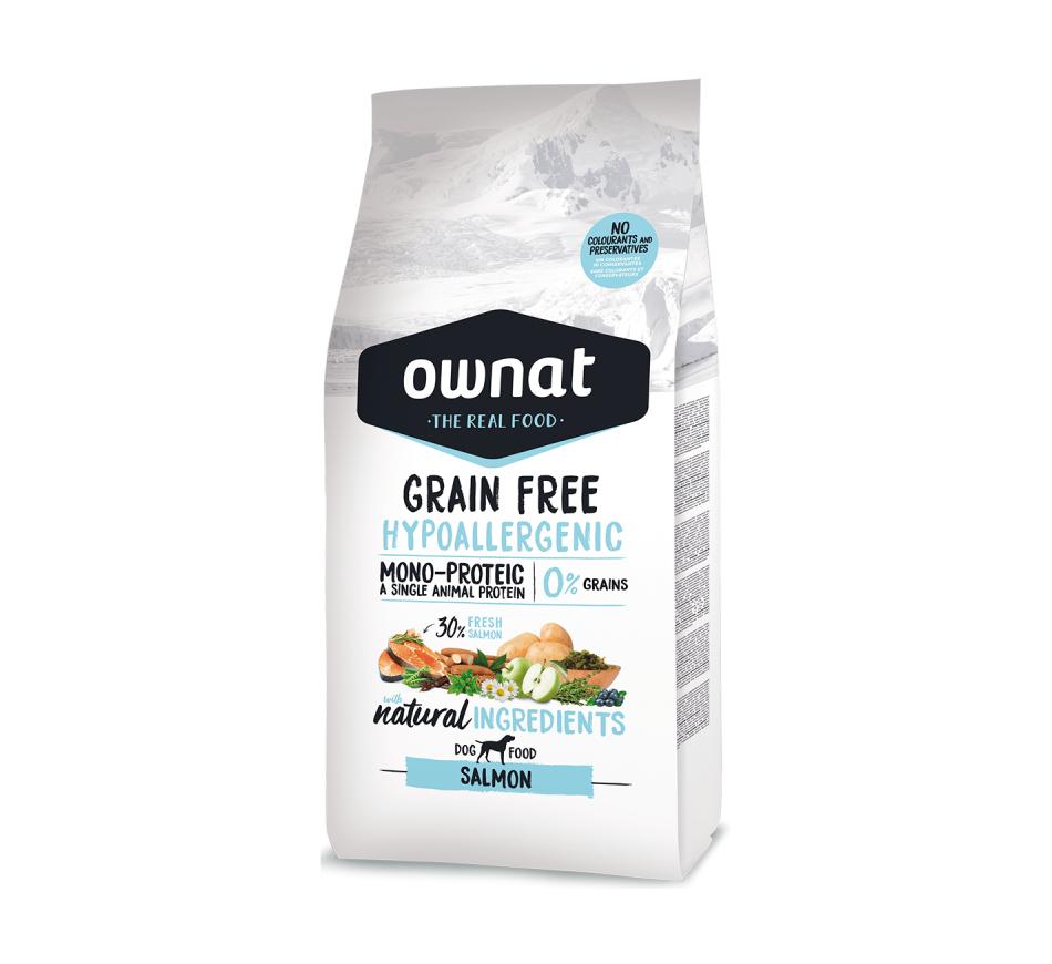 Ownat Cão Grain Free Hypoallergenic é uma ração super premium que utiliza uma única fonte de proteína animal, o Salmão. A ausência de cereais, grain free, bem como os ingredientes de primeira qualidade, reduz a possibilidade de intolerância ou alergia ao alimento, sendo também uma ração com um grau de digestibilidade elevado, tornando mais fácil a digestão.