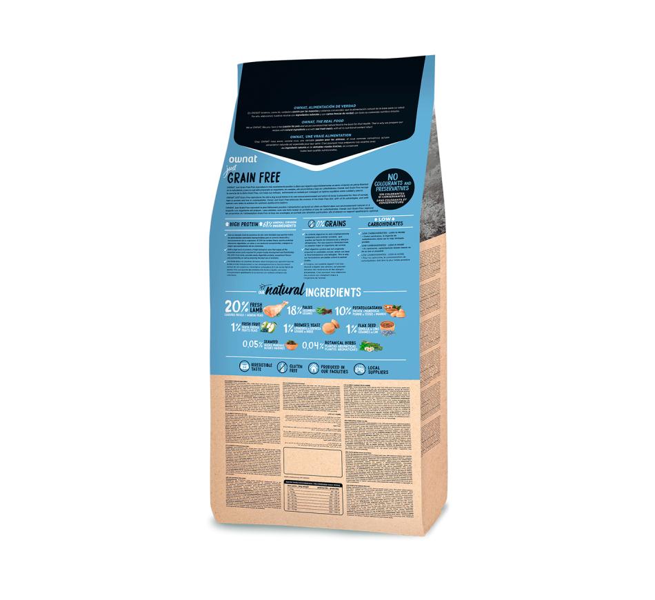 Ownat Just Grain Free Adult Lamb é um alimento completo e equilibrado para cães adultos com um nível normal de atividade. Com 20% de carne fresca de borrego, é especialmente indicada para animais que apresentem sensibilidade e intolerâncias digestivas na pele ou no pelo.