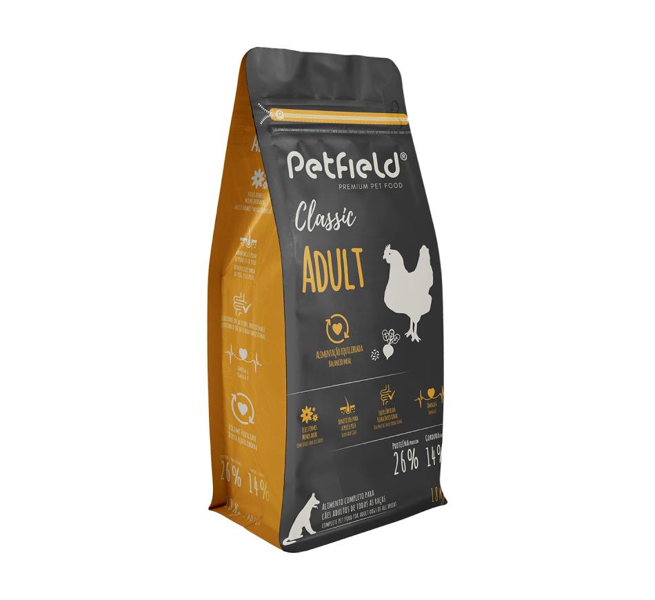 Petfield Classic Adult é um alimento completo formulado para cães adultos de todas as raças.