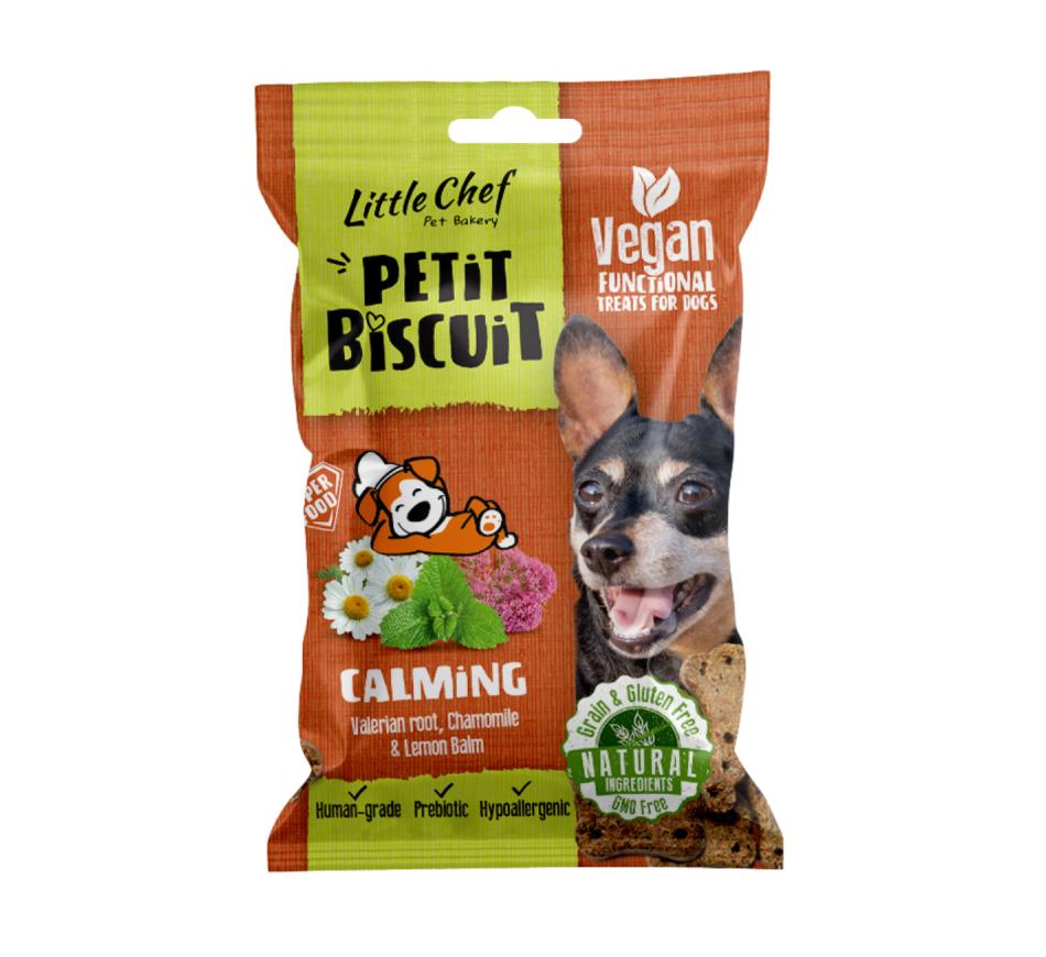 Petit Biscuit Calming é um suporte proativo para a saúde do seu cão, acalma os nervos e promove o relaxamento . Snacks funcionais, saudáveis e deliciosos para cães. Estes petiscos são cozidos no forno em pequenas quantidades com superalimentos, ingredientes naturais e de qualidade humana, e são veganos. Podem ser oferecidos aos cães em qualquer ocasião como recompensa ou petisco.