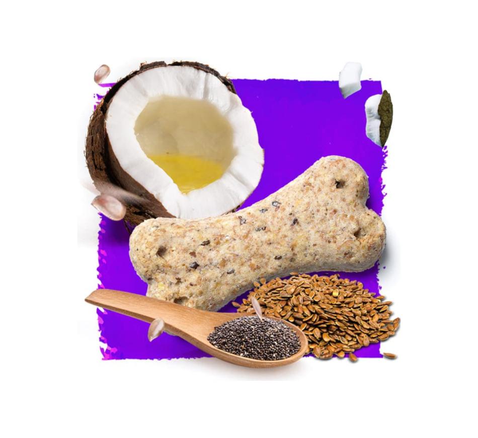 Esta receita saudável com sementes de linhaça, sementes de chia e óleo de coco deixará a pele e os pelos do seu pet saudáveis e brilhantes. Criada com carinho para qualquer atividade ou ocasião.