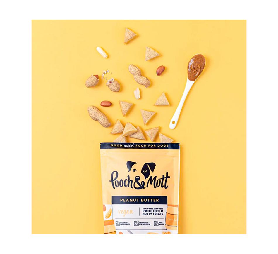 Pooch & Mutt Snacks Funcionais Vegan Probiotic Bite são Snacks que para além de serem deliciosos têm todos os beneficios nutricionais da manteiga de amendoim natural (sem sal, açúcares ou xilitol) e enriquecidos com pre e probióticos.
