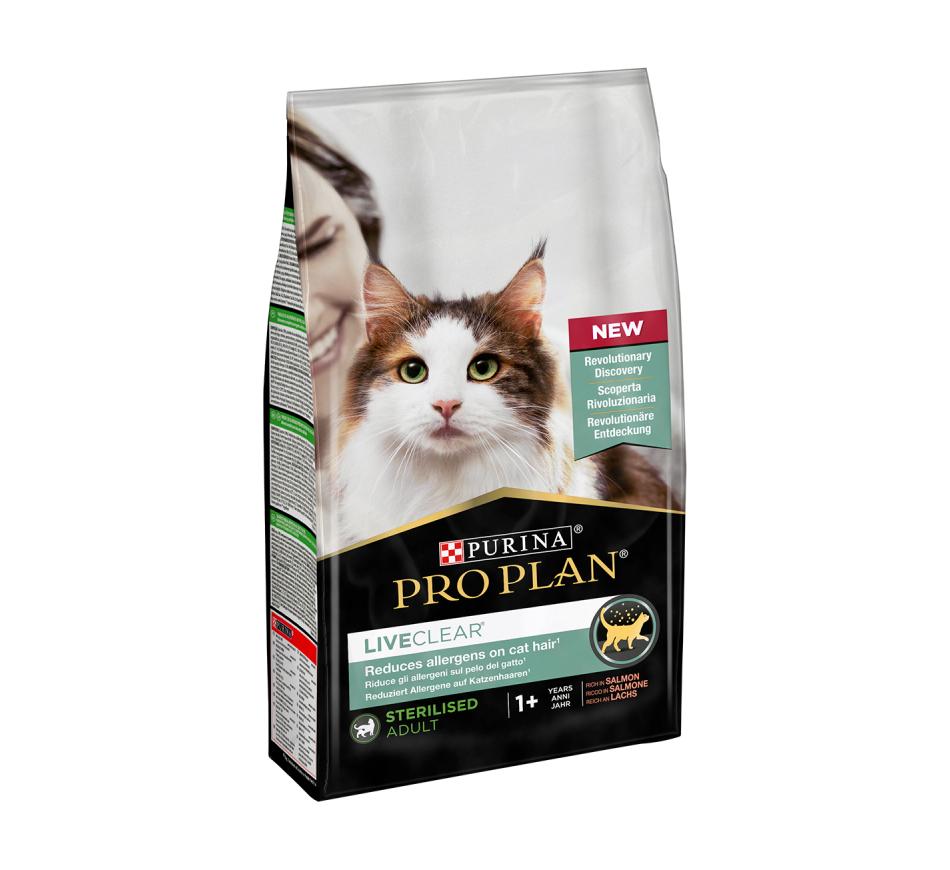 Pro Plan LiveClear é um alimento revolucionário para gatos que reduz os alergénios no pelo e pele descamada dos gatos em média 47% a partir da terceira semana de alimentação diária.