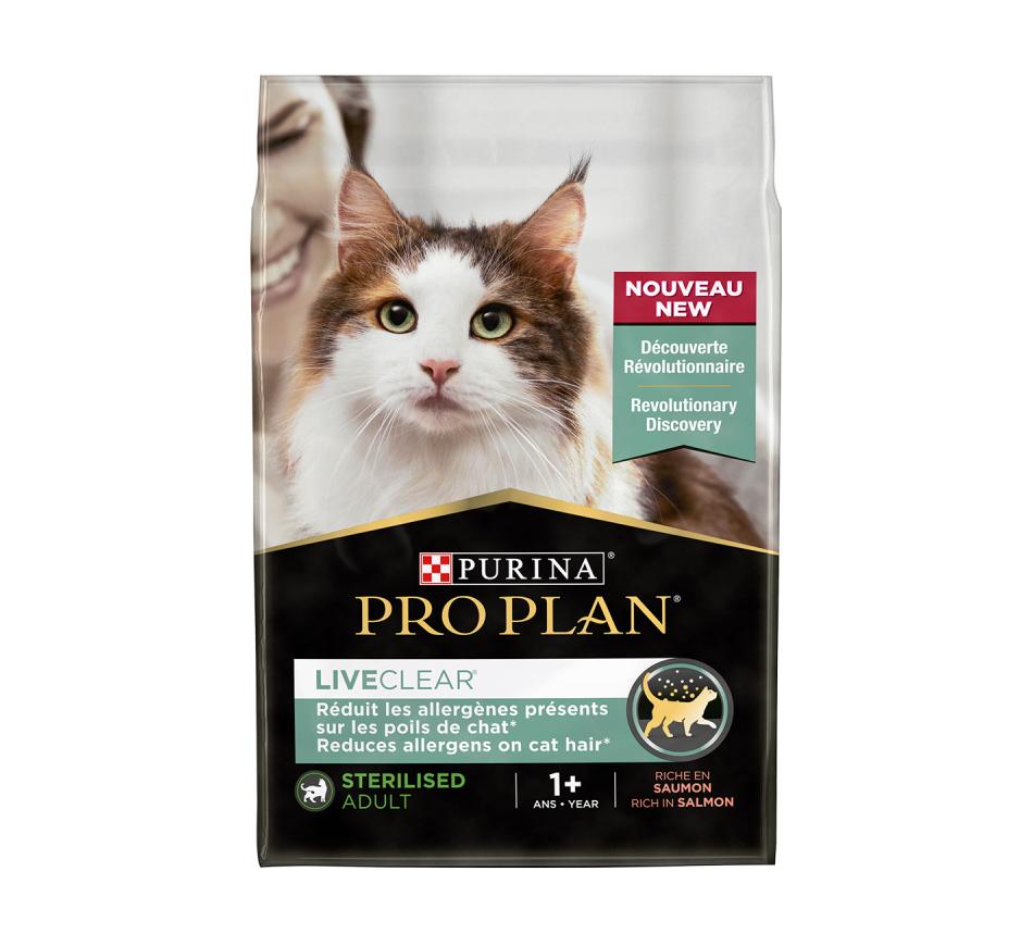 O Primeiro Alimento para Gatos com redução de Alergénios, apoiado por mais de uma década de pesquisas, pro plan LiveClear demonstrou reduzir com segurança e eficácia, os alérgenos em pelos de gato, bem como a caspa que se desenvolve na pele.