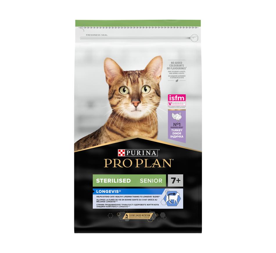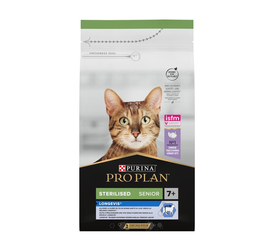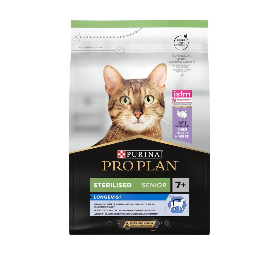 Purina Pro Plan Gato Longevis Sterilised Adult 7+ Perú, é um alimento completo para gatos adultos esterilizados que prolonga a esperança média de vida e que melhora a qualidade de vida.