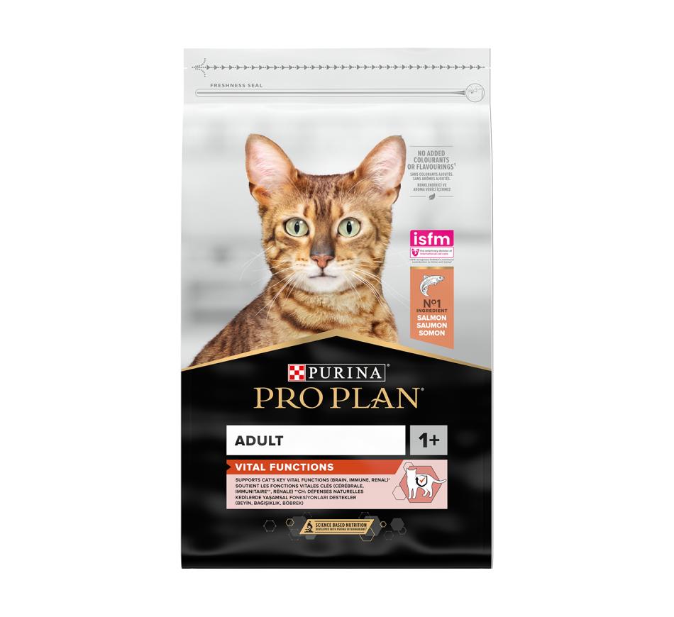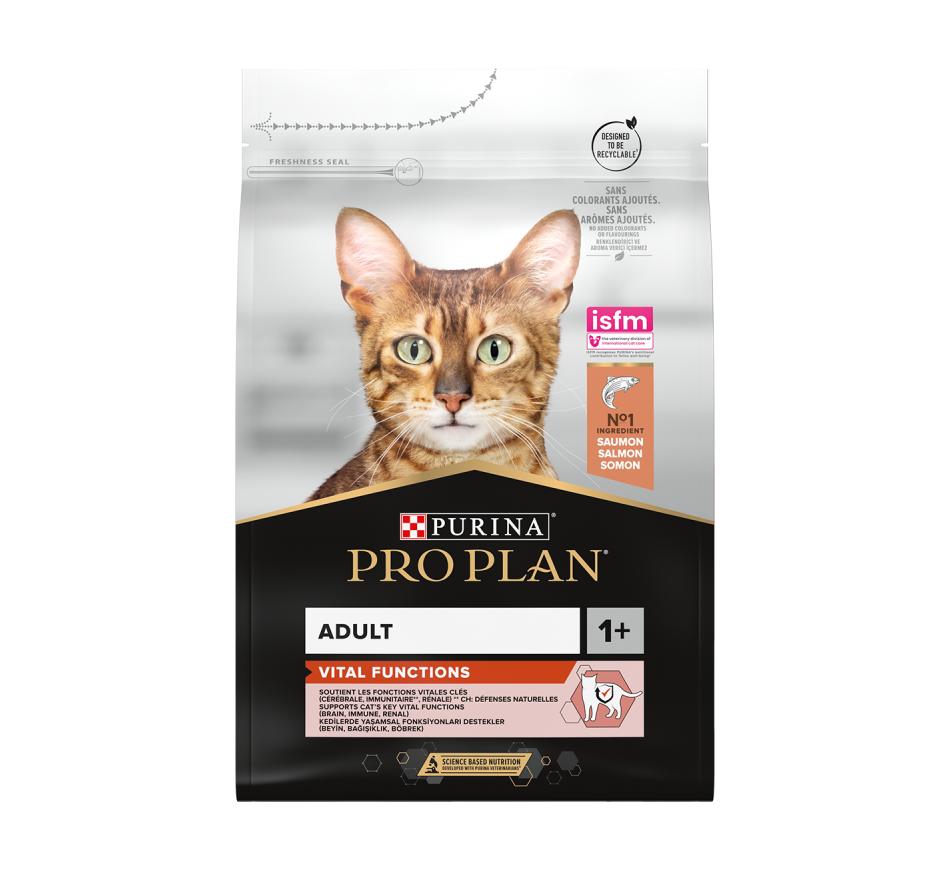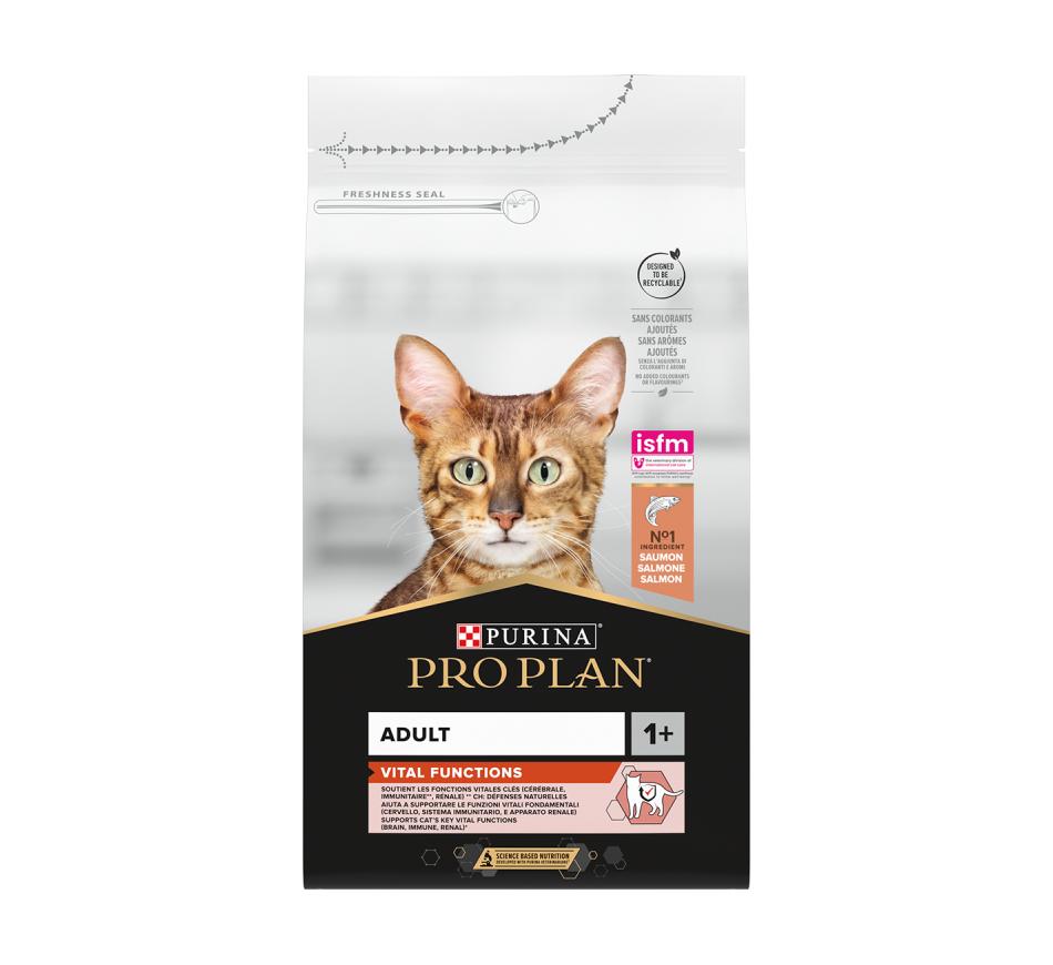 Purina PRO PLAN Adulto com Salmão é um alimento completo para gatos Adultos que contém todos os nutrientes que o seu gato precisa para a sua vitalidade diária e saúde a longo prazo.