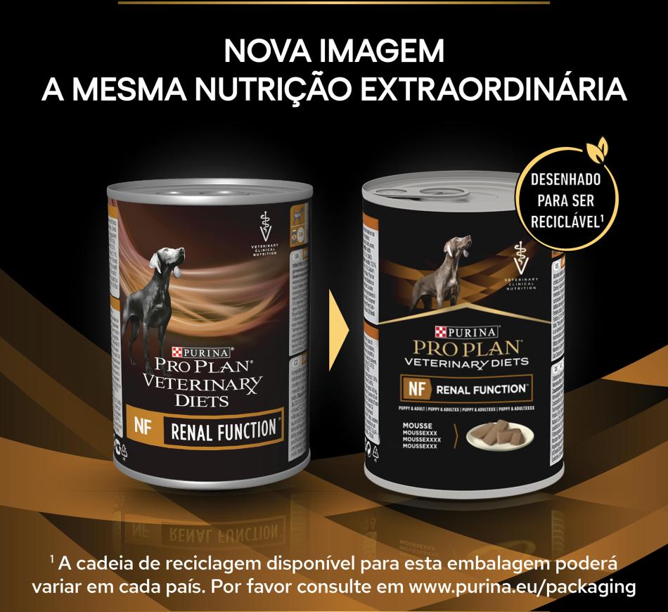 Pro Plan Vet Diets Canine NF Mousse é um alimento que contém quantidades restritas de fósforo, pois, este é mineral que demonstrou contribuir para a progressão da doença. Tem também quantidades restritas de proteínas de elevada qualidade, para ajudar a minimizar a formação de toxinas, enquanto ajuda a manter a massa muscular.
