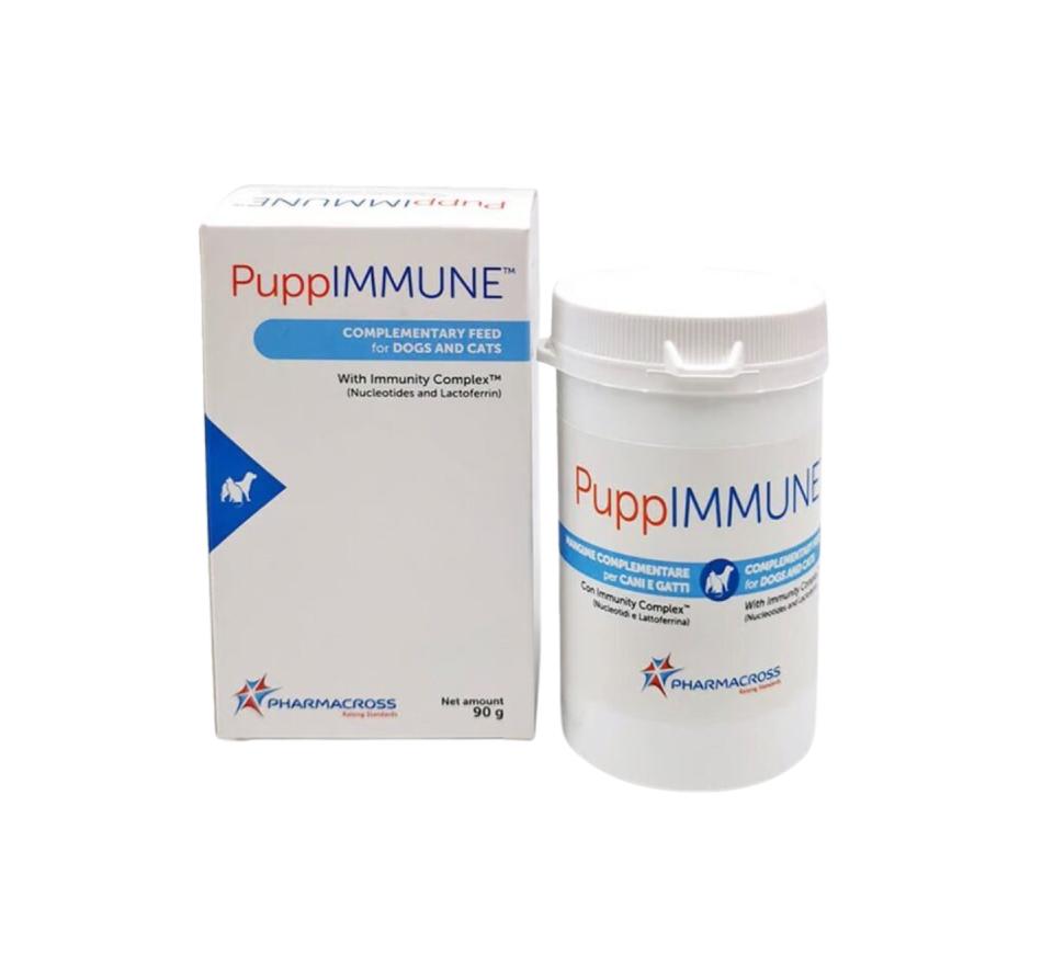 PuppIMMUNE™ é um alimento complementar recomendado para cães e gatos, visando otimizar a resposta imunológica, alcançando maior eficiência na resposta imune inata e adaptativa. PuppIMMUNE™ contém Immunity Complex™ (com sua composição exclusiva: Lactoferrina e Nucleotídeos), que melhora a imunocompetência de cães e gatos, proporcionando assim uma resposta mais eficaz do sistema imunológico a possíveis agentes nocivos. A lactoferrina, com suas propriedades antibacterianas, antivirais e anti-inflamatórias, protege o organismo contra infecções, enquanto os nucleotídeos melhoram o estado imunológico dos filhotes em fase de desmame e proporcionam uma melhor resposta imunológica humoral, aumentando os níveis de anticorpos protetores.