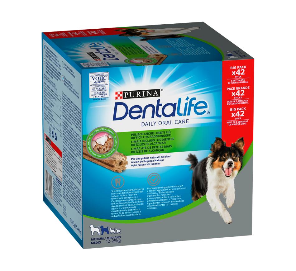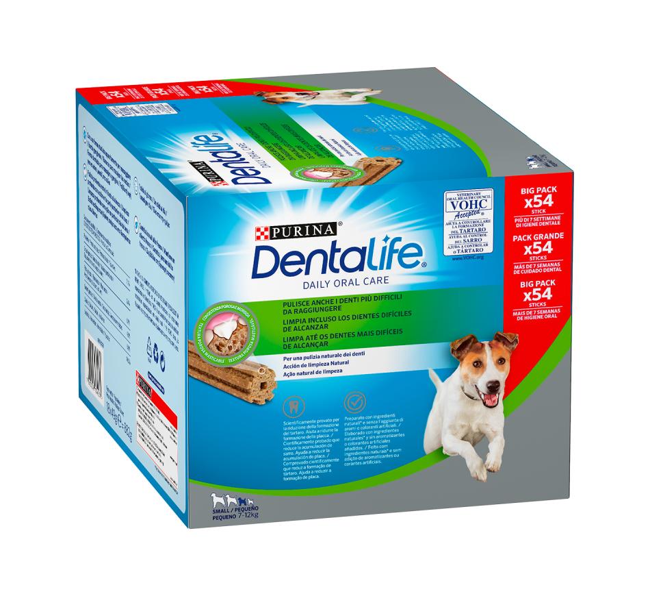 Um inovador snack dentário que está comprovado cientificamente que ajuda a escovar até mesmo os dentes mais difíceis de chegar na parte de trás da boca e que são mais vulneráveis à formação de placa e de tártaro.