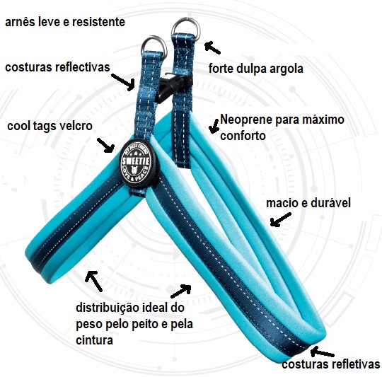 Não sendo um arnês de ajuste, existem vários tamanhos. É necessário ver a medida o mais exato possível do peito do seu patudo de forma a escolher o arnês correto.