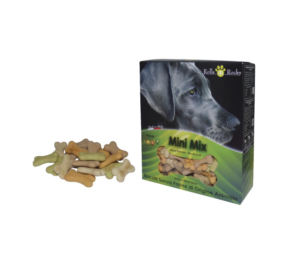 Biscoitos Rolls Rocky saudáveis, nutritivo, ingredientes naturais e de alta qualidade. Biscoitos RollsRocky são cozidos no forno. A sua crocância ajuda a manter os dentes limpos e hálito fresco. Os snacks Rolls Rocky Mini Mix são produzidos e embalados em Itália, lanches naturais com antioxidantes, minerais e vitaminas, útil para a saúde do cão.