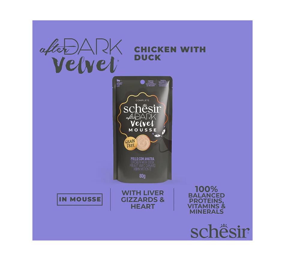 Uma receita rica em proteínas, à base de filetes de frango, com saborosos e nutritivos pedaços de coração, fígado e moela, com pato apetitoso, misturados numa mousse macia.