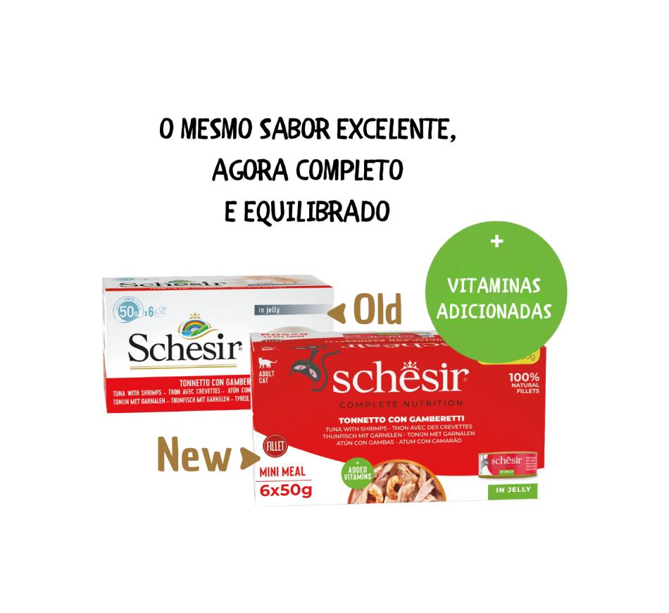 Schesir Complete Nutrition é a nova linha de alimentos húmidos completos e balanceados com filés de carne ou peixe de verdade, cuidadosamente selecionados, e ingredientes 100% naturais e minimamente processados. Cada receita é rica em proteínas e enriquecida com vitaminas e minerais essenciais. Nutritiva, como uma presa de verdade.
