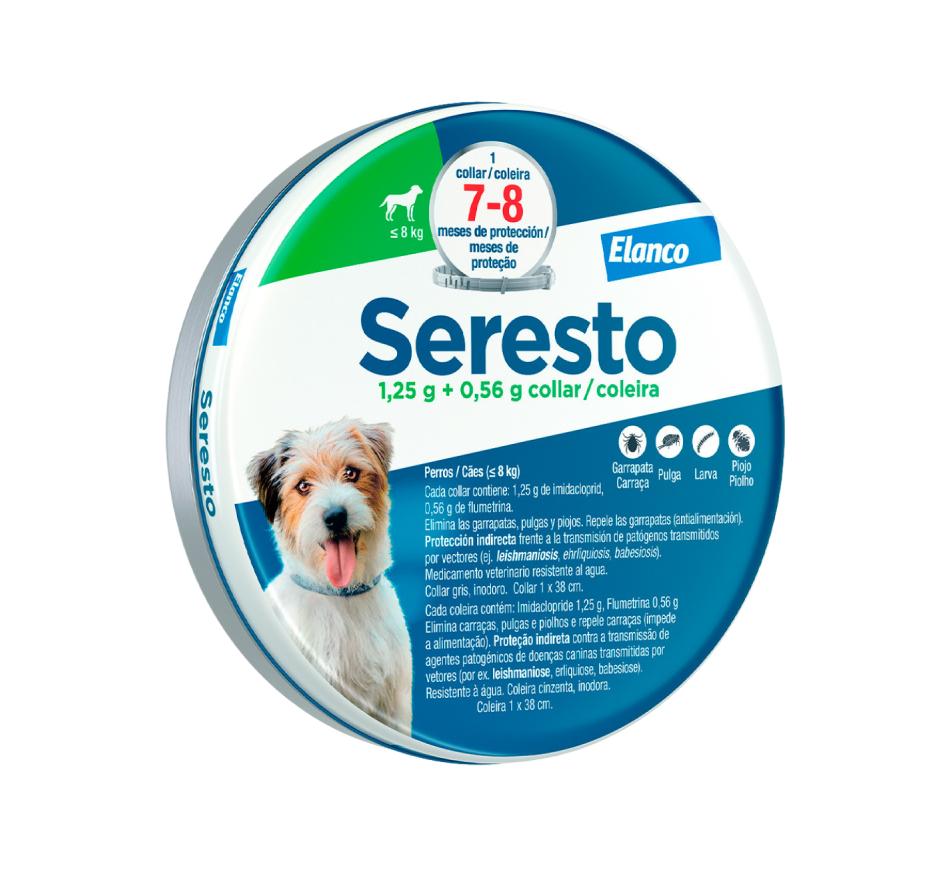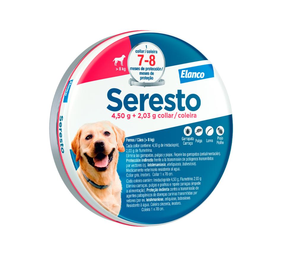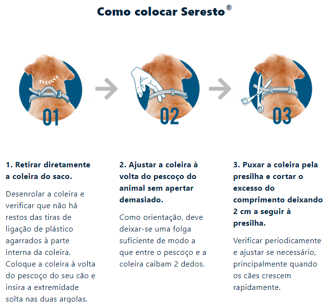 Coleira que utiliza uma tecnologia inovadora contra pulgas e carraças. Seresto®, até 8 meses de proteção contra pulgas e carraças em cães.