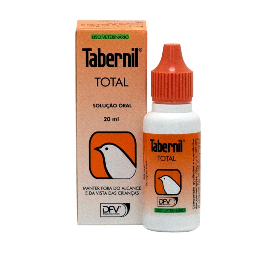 Tabernil Total é um complemento vitamínico para canários e aves de adorno em geral que se administra na água em forma de gotas quando se produz um debilitamento geral no decorrer e convalescença de qualquer doença que se desenvolve em estados carenciais devidos a deficiências de vitaminas e aminoácidos.