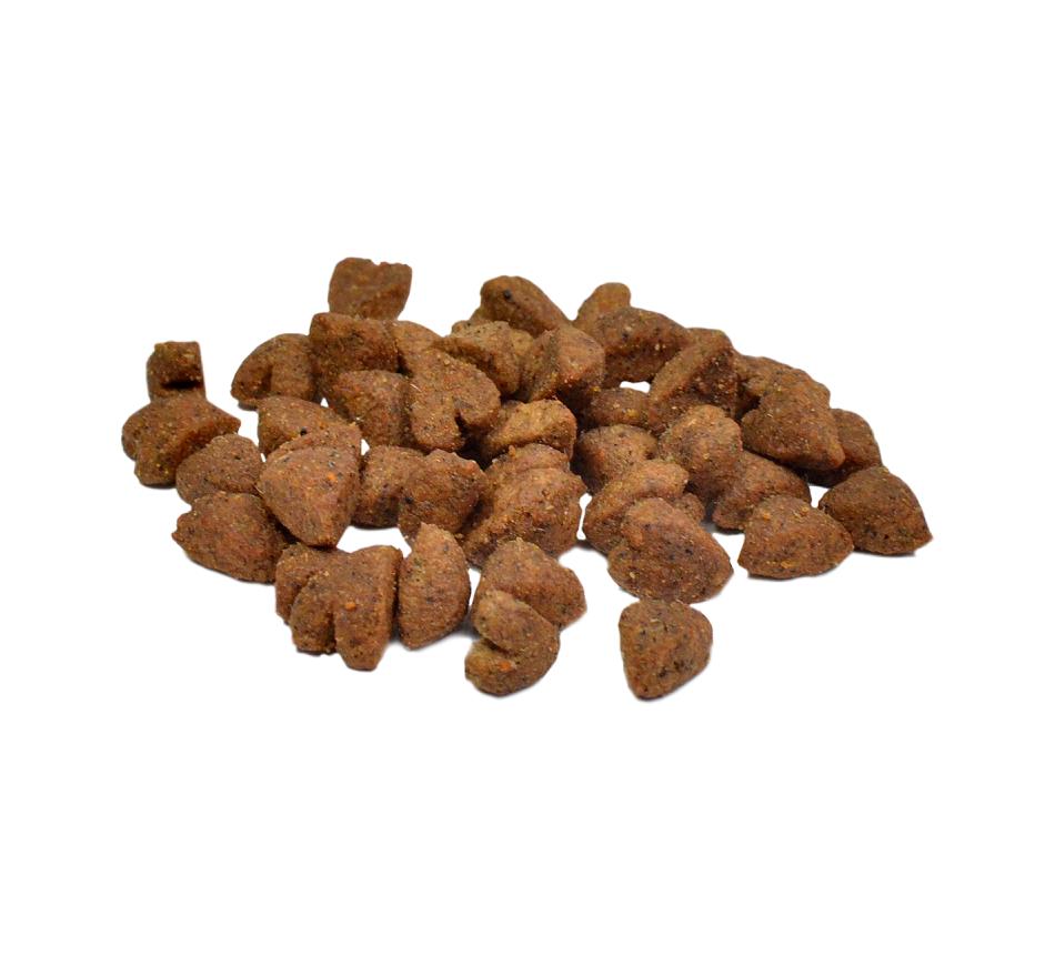 - Alimento seco completo e equilibrado, sem cereais.