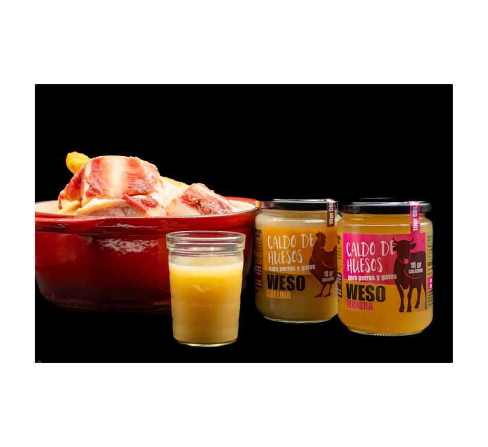 O Caldo de osso de Vitela WESO é um complemento natural à dieta do seu cão ou gato.