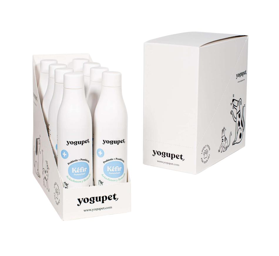Yogupet Cão e Gato Kefir Anti-Inflamatório de Mirtilo e Bróculos é um Alimento complementar para cães e gatos, sem lactose, com mirtilos e bróculos para restaurar a flora intestinal, reduzir o colesterol, uma fonte extra de antioxidantes, vitaminas e minerais que ajudam a fortalecer os seus ossos e dentes.
