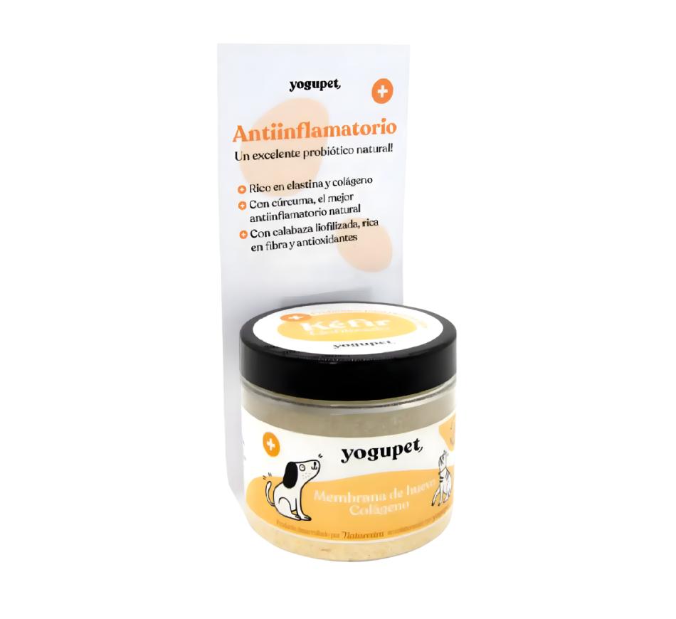 Yogupet Cão e Gato Kefir Liofilizado Ovo e Cologénio é um Alimento complementar para cães e gatos, Kefir de leite de vaca liofilizado, sem lactose, com abóbora, colágeno e membrana de casca de ovo em pó para restaurar a flora intestinal, um anti-inflamatório natural Rico em elastina e colágeno.