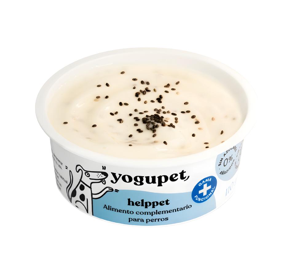 Alimento complementar para cães, iogurte sem lactose com chia, inulina de chicória e ginseng para melhorar o sistema imunológico e a saúde dos órgãos, músculos, cabelos e unhas.